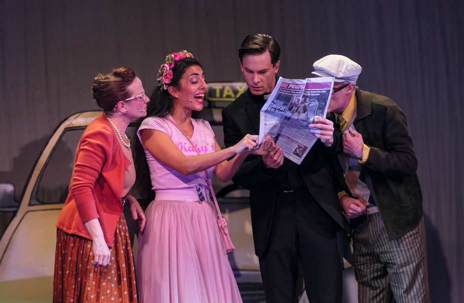 Wer bei Himmel und Kölle einen Abend voller rheinischer Klischees erwartet, liegt nur teilweise richtig. Natürlich darf kölscher Witz nicht fehlen – aber das Stück ist weit mehr als ein lokales Spaßmusical. Im Zentrum steht der junge Pfarrer Elmar, der aus der Provinz in die Großstadt versetzt wird, um dort einen Kollegen zu ersetzen. Gleich in seiner ersten Nacht lernt er die schockierte Kathy kennen, die nach ihrem Junggesellinnenabschied völlig durcheinander ist – und gemeinsam mit Elmar gerät sie in eine Reihe kölscher und zwischenmenschlicher Verwicklungen, die ihren Glauben an sich selbst und an die Liebe ordentlich auf die Probe stellen.